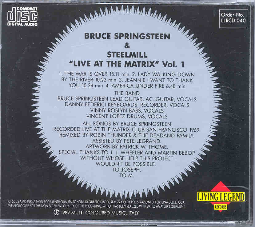 Bruce Springsteen – Live At The Matrix Vol.1 ( 1969 w / Steel Mill ) ( Living Legend )
