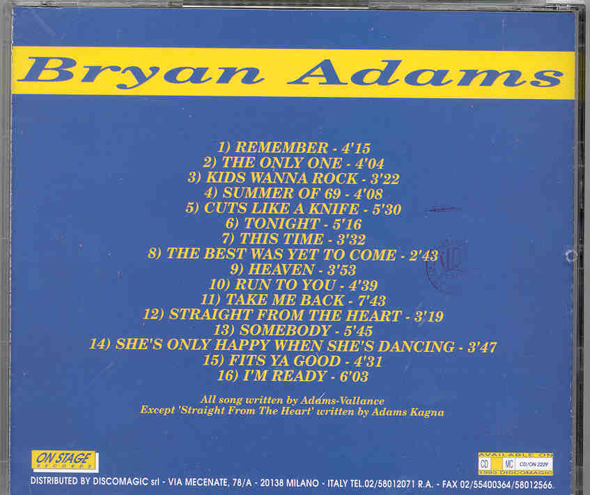 Bryan Adams – Reckless Tour ’84 ( Live In London ) ( On Stage Recs )