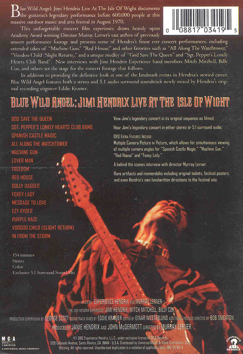 DVD Jimi Hendrix Blue Wild Angel DVD Jimi Hendrix Blue Wild Angel