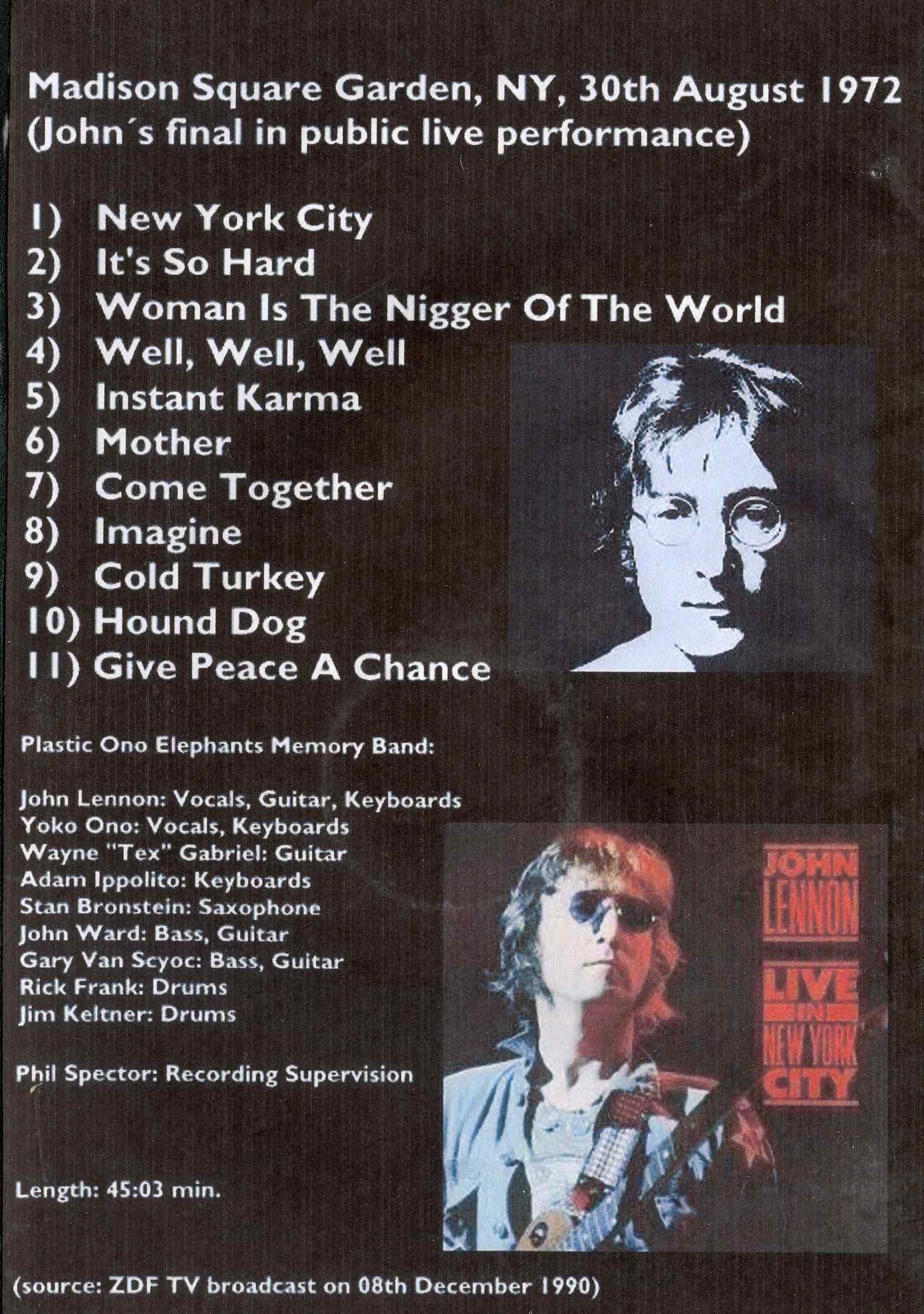 DVD John Lennon M.S.G 08 30 72 DVD John Lennon M.S.G08 3072