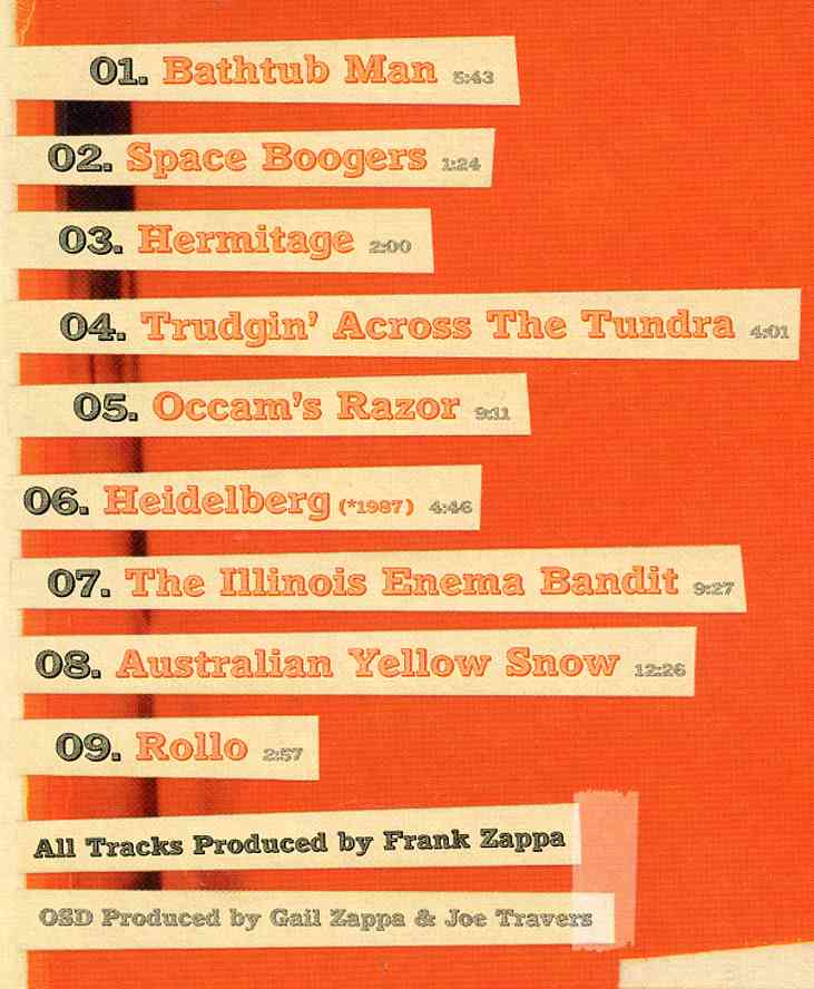 All titles copyrighted for the world by the Zappa Family Trust dba Munchkin Music, ASCAP.