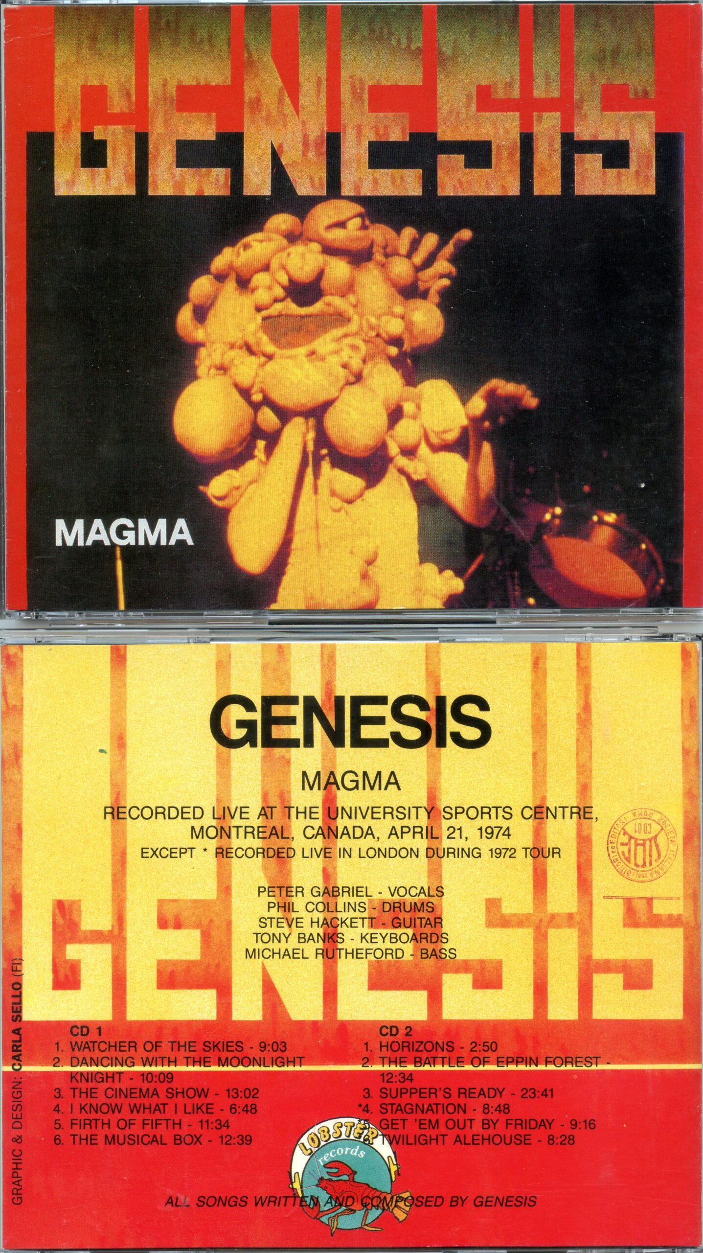 GENESIS Magma 2 CD SET Lobster University Sports Centre Montreal Canada April 21st 1974 GENESIS Magma ( 2 CD SET ) (Lobster ) ( University Sports Centre, Montreal, Canada , April 21st, 1974 )