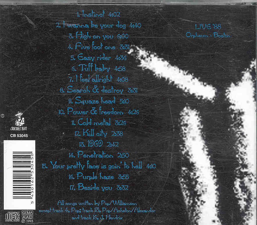 Iggy Pop Metalhead Live at Neue Welt Berlin Germany on January 26th 1991 KTS Iggy Pop Metalhead ( Live at Neue Welt , Berlin , Germany on January 26th , 1991 )( KTS )