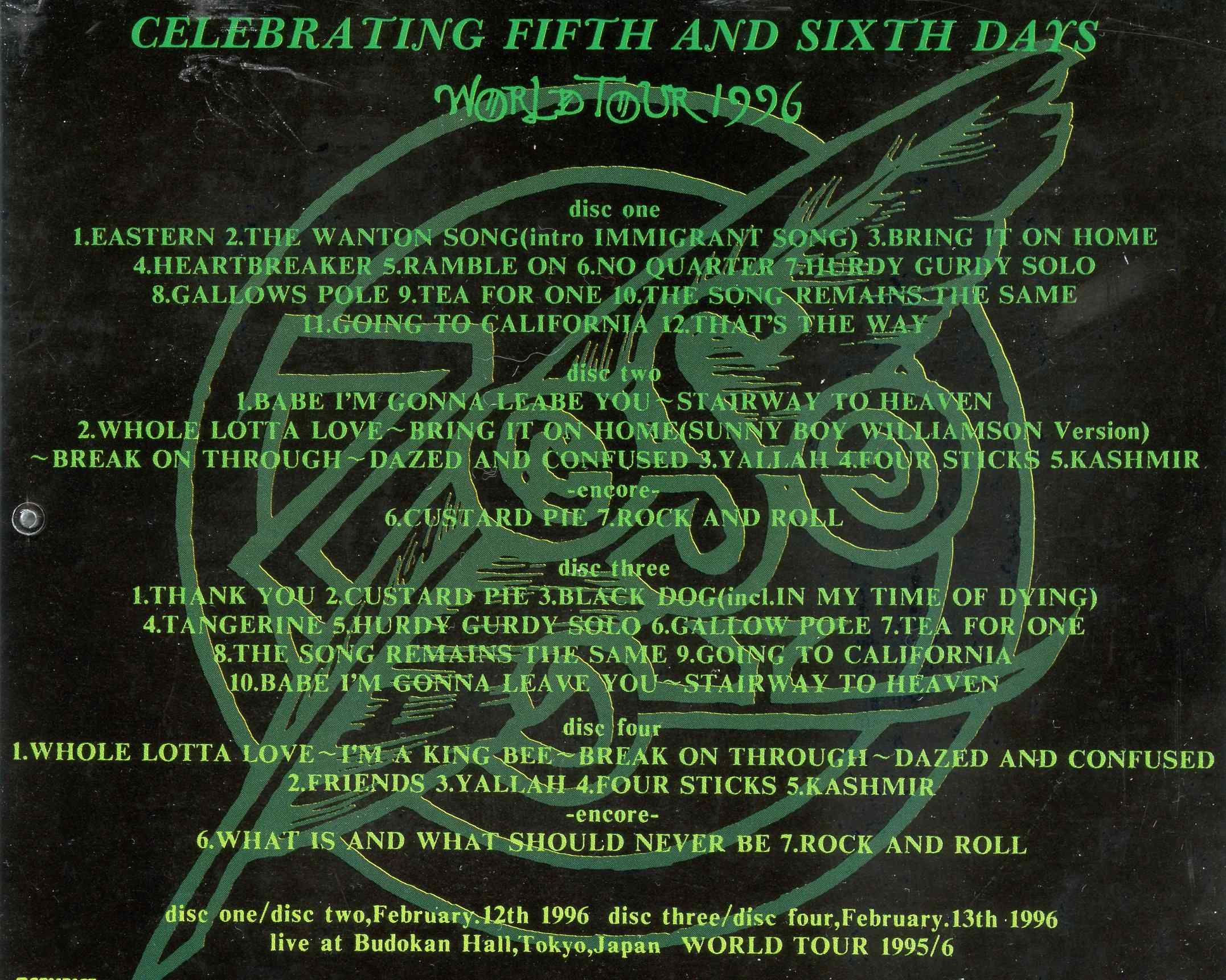 Jimmy Page & Robert Plant – Zoso – Celebrating Fifth and Sixth Days – World Tour 1996 4 CD Jimmy Page & Robert Plant – Zoso – Celebrating Fifth and Sixth Days – World Tour 1996 (4 CD)