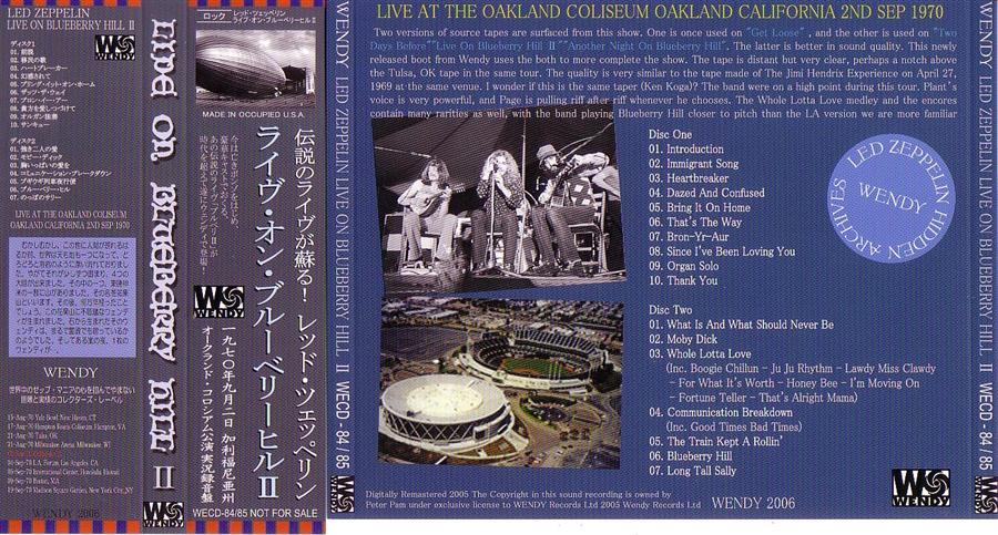 Led Zeppelin – Live On Blueberry Hill II ( 2 cd set )( Wendy )( Oakland Coliseum, Oakland California, 2nd Sep 1970 )