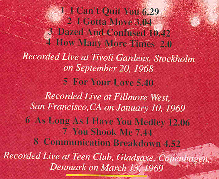 Recorded Live At Teen Club, Gladsaxe, Copenhagen, Denmark On March 13, 1969