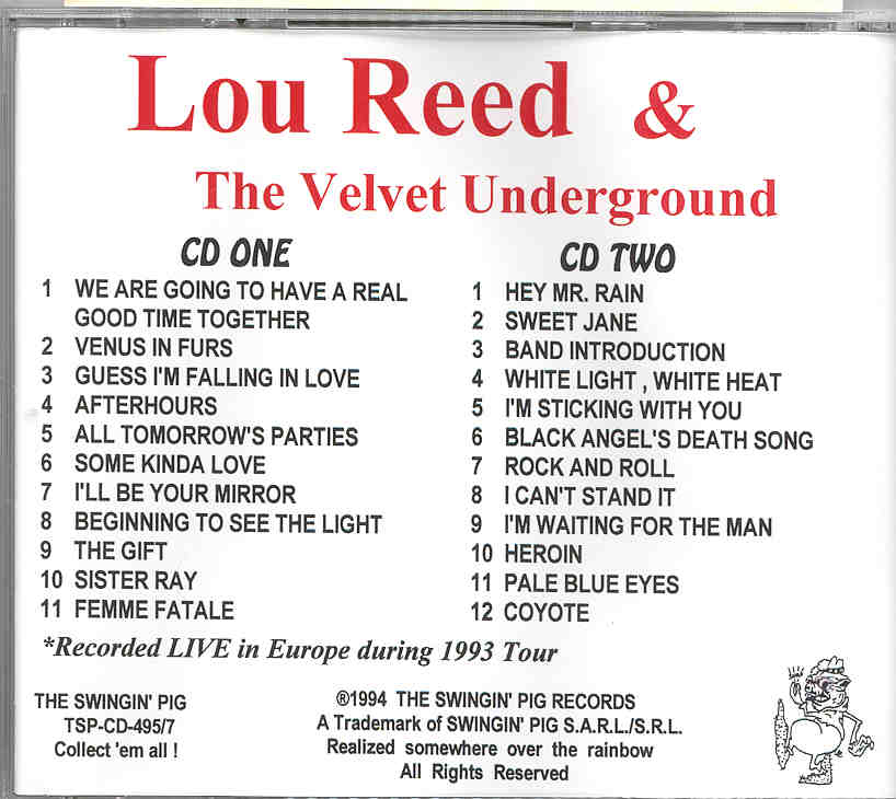 Lou Reed / Velvet Underground – Live In Europe 1993 ( Swingin’ Pig ) ( 2 CD SET )