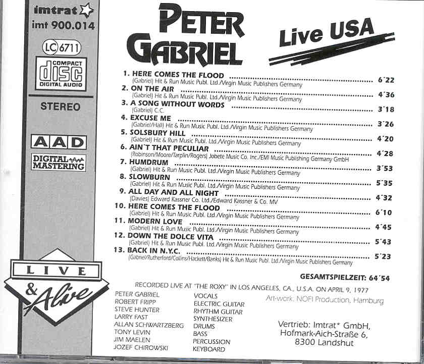 P. Gabriel / GENESIS / P. Collins – Live In USA ( Peter Gabriel )