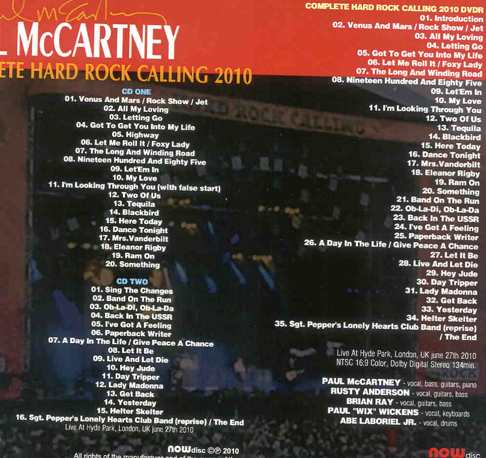Paul McCartney – Complete Hard Rock Calling 2010 ( 2 CD + 1 DVD set )( London , UK , June 27th , 2010 )