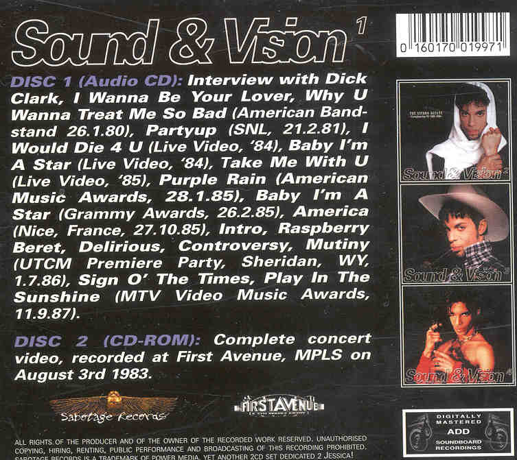 Prince Sound & Vision Vol. 1 2 CD SET TV Appearances 1980 1988 Prince Sound & Vision Vol. 1 ( 2 CD SET ) ( TV Appearances 1980 1988 )
