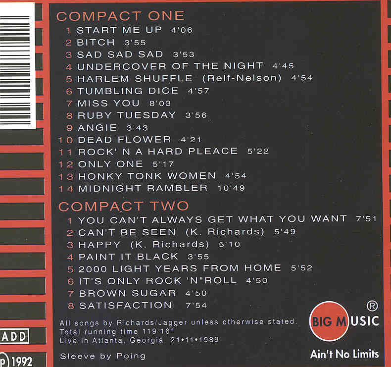 Rolling Stones – Back In Business ( 2 cd set ) ( Atlanta , Georgia , USA , November 21st , 1989 ) ( Big Music )