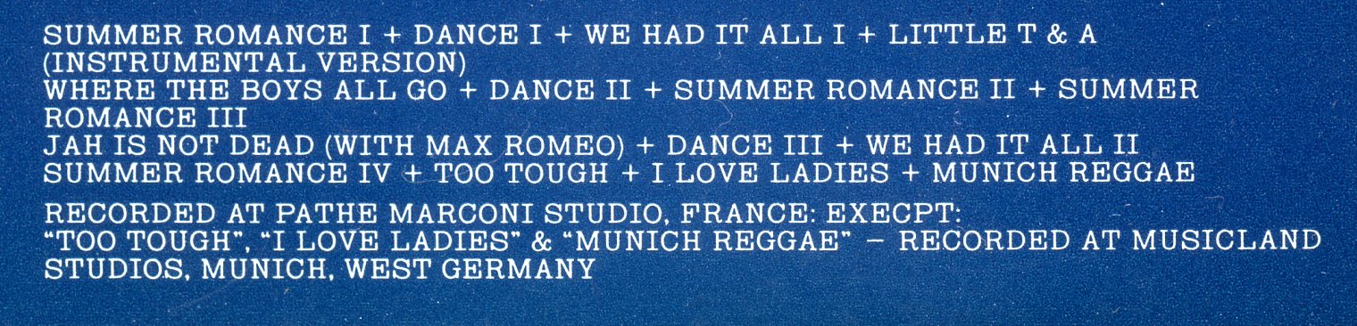 Side D: 2-4. Musicland Studios, Cologne, Germany: March-April 1975