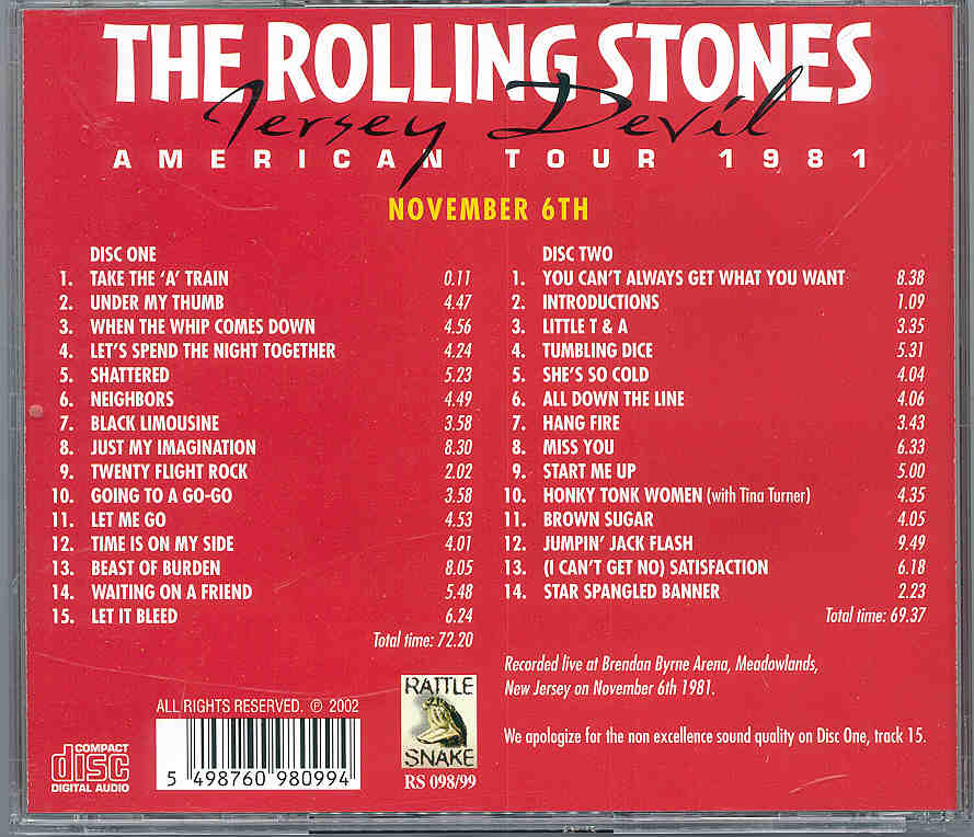 Rolling Stones – Jersey Devil 2 ( American Tour 1981 )( November 6th )( 2 CD SET )