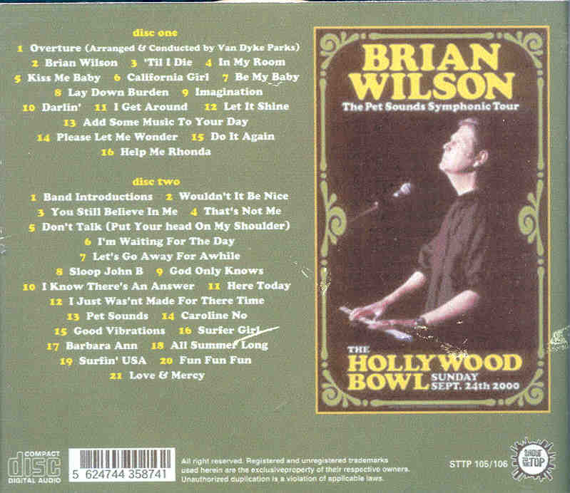 The Beach Boys – The Pet Sounds Symphonic Tour ( 2 cd set )( STTP ) ( Brian Wilson Live at the Hollywood Bowl Sept 24th , 2000 )