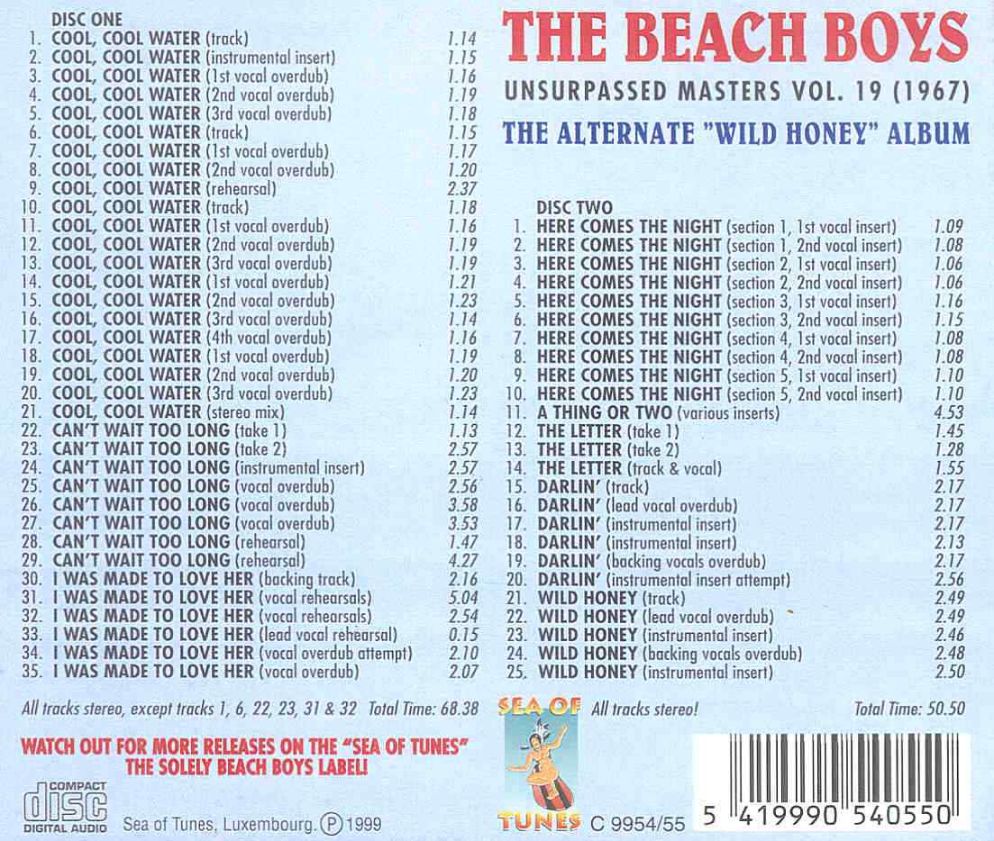 The Beach Boys – Unsurpassed Masters vol. 19 ( 1967 )( 2 CD SET )( The Alternate Wild Honey Album )