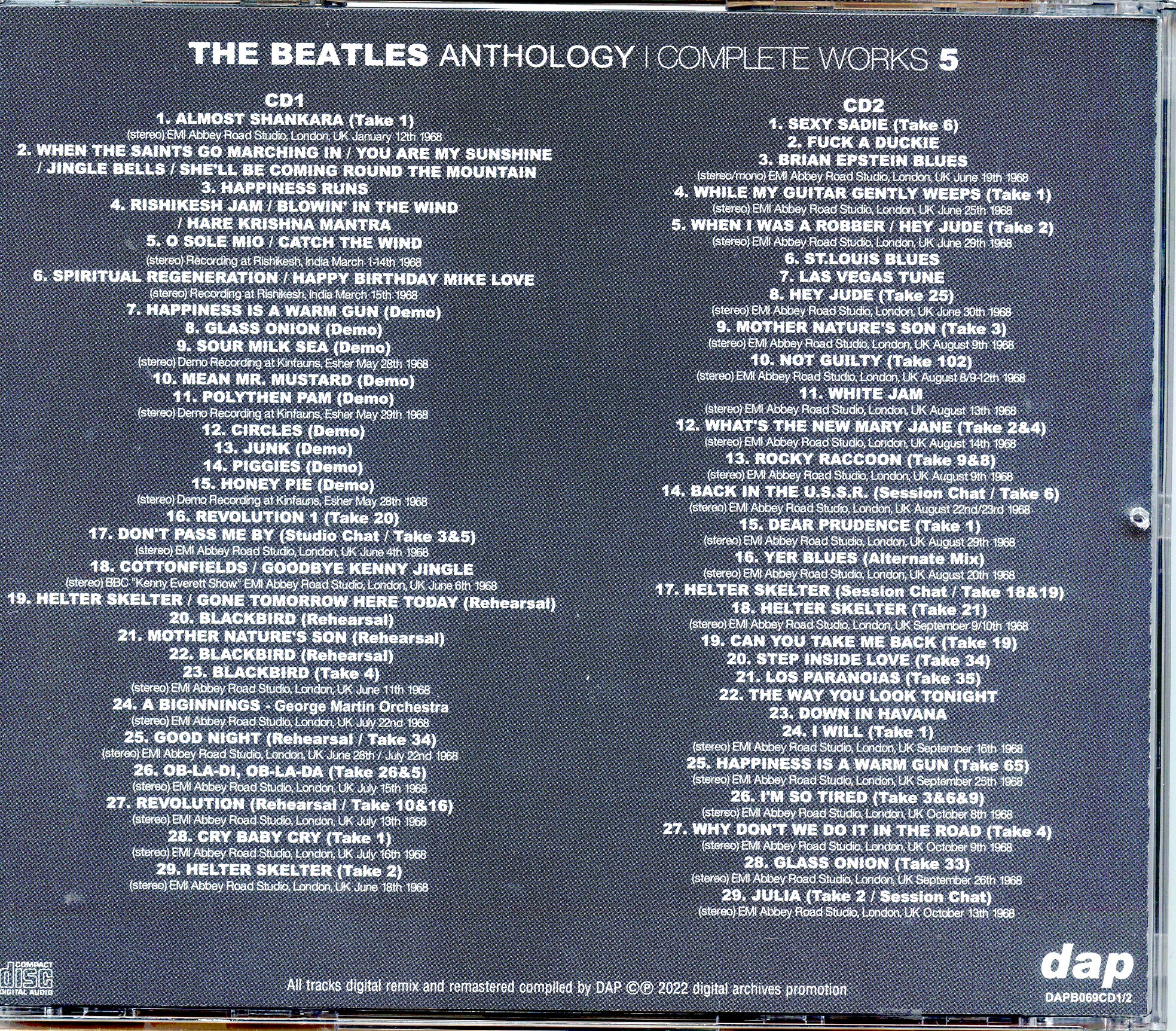 THE BEATLES Anthology Complete Works Vol. 5 2 CD SET 2022 DAP THE BEATLES Anthology Complete Works Vol. 5 ( 2 CD SET ) ( 2022 DAP )