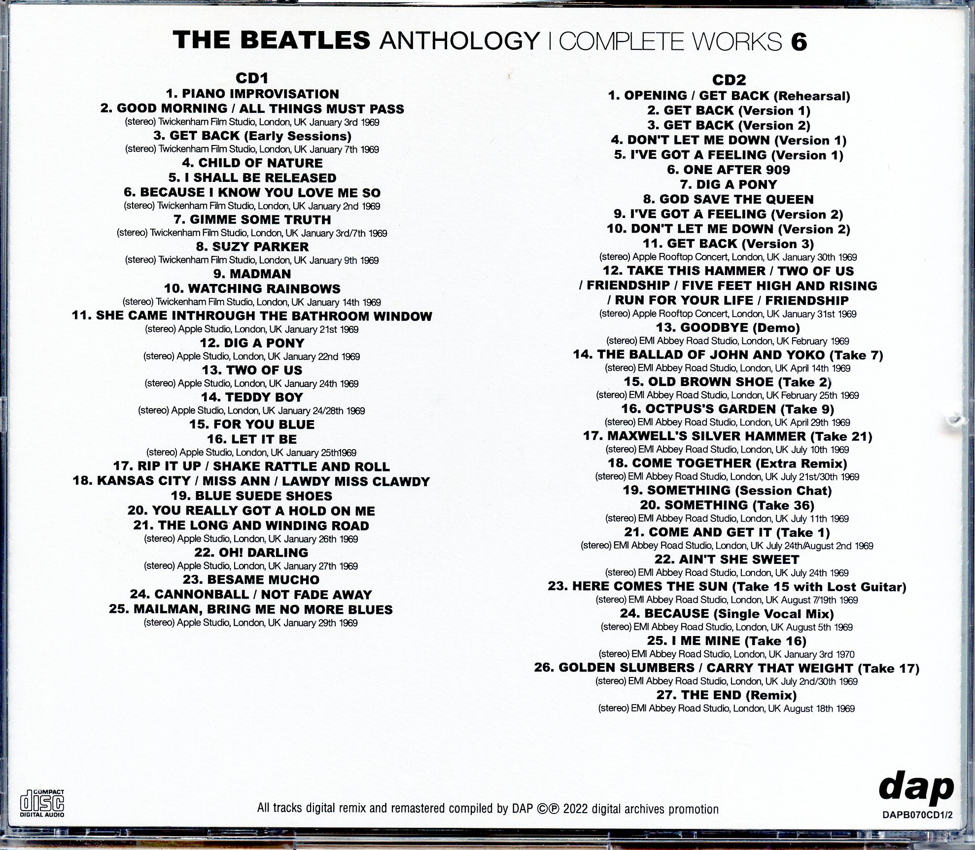 THE BEATLES Anthology Complete Works Vol. 6 2 CD SET 2022 DAP THE BEATLES Anthology Complete Works Vol. 6 ( 2 CD SET ) ( 2022 DAP )