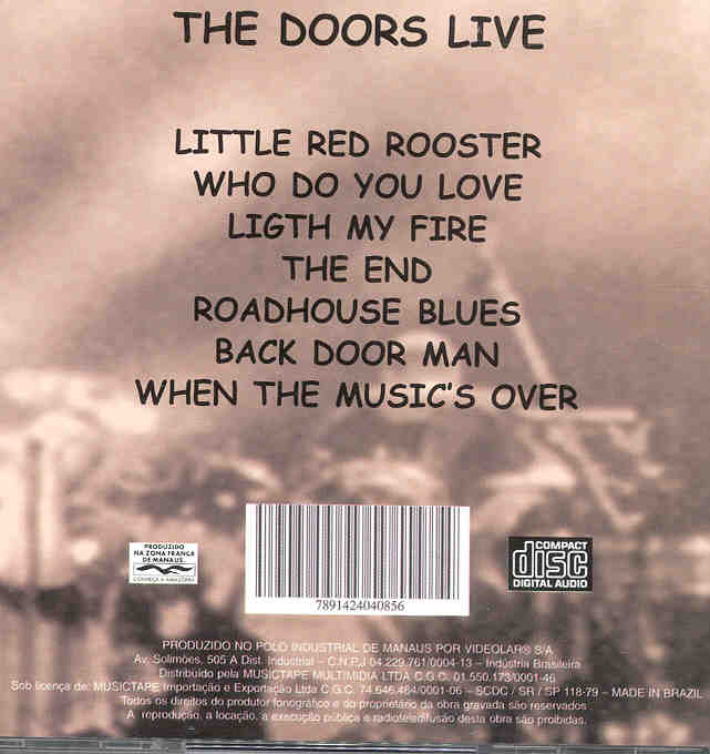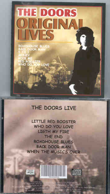 A live Brazil compilation release. There are numerous mislabeled tracks, and the sound quality is average. The producers of this release couldn’t get the title straight, the front cover says ‘Original Lives’ the back cover and disc says ‘The Doors Live’.