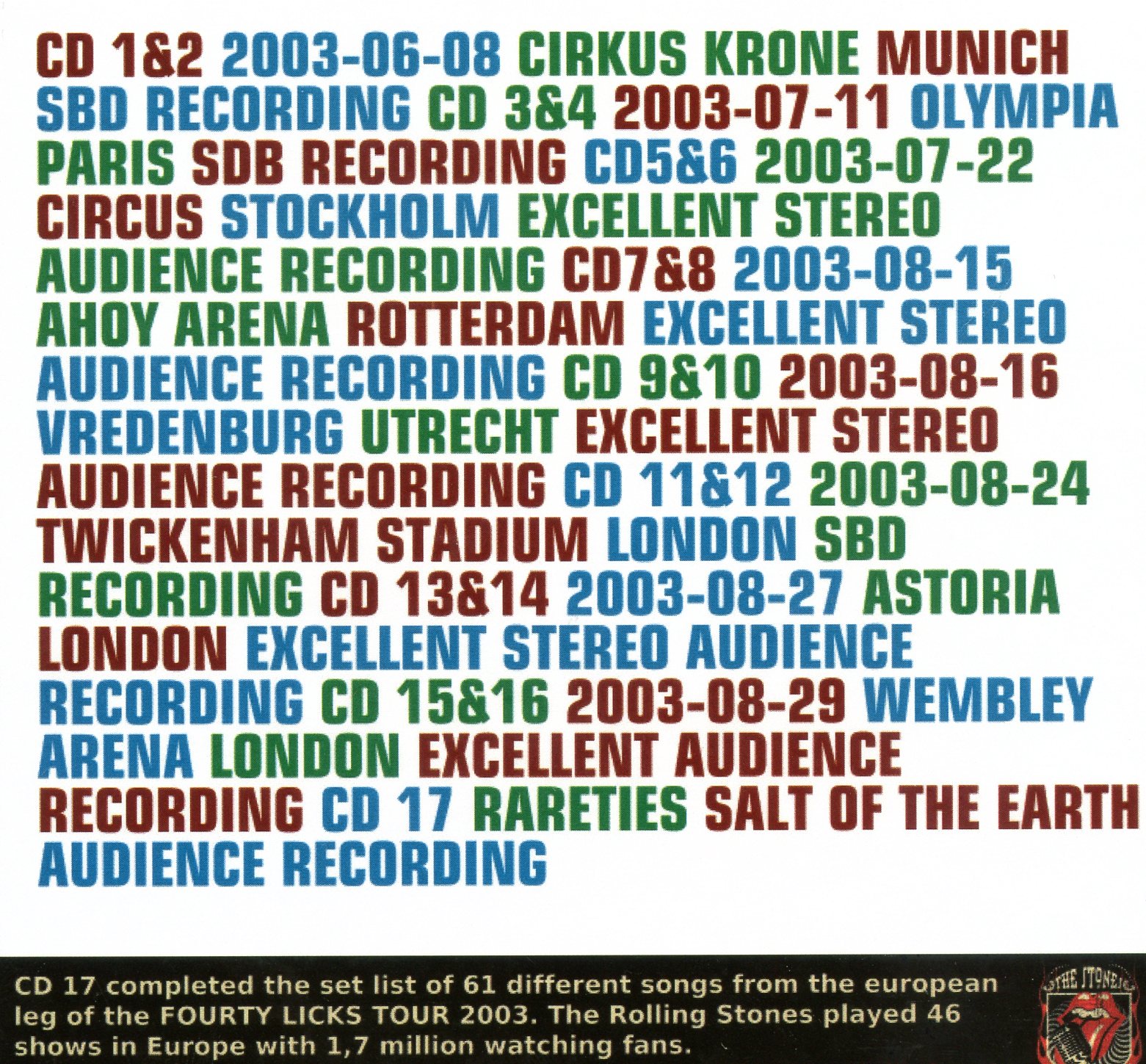 The Rolling Stone – Licks Tour Europe 2003 – 17 CD Booklet The Rolling Stone – Licks Tour Europe 2003 – (17 CD) Booklet